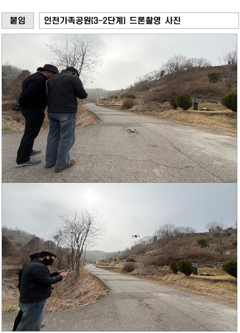 인천광역시(시장 유정복) 종합건설본부는 현재 추진 중인 ‘인천가족공원 조성사업(3-2단계)’에 드론을 활용한 분묘 조사와 보상 절차를 본격 추진한다고 밝혔다.