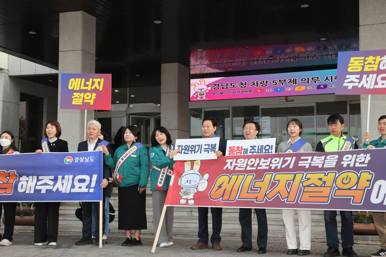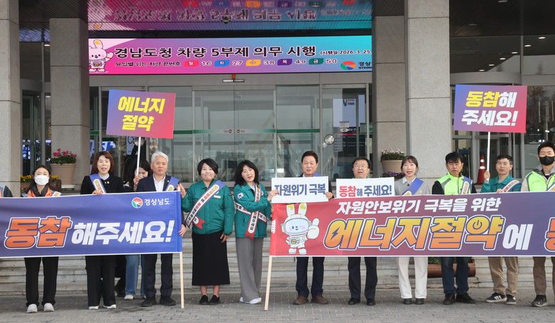 - 본청 내 비상대책본부 설치․운영 및 ‘에너지 지킴이’ 지정 등 추진 [세계타임즈=경남 최성룡 기자] 경상남도(도지사 박완수)는 최근 중동 정세 불안으로 인한 에너지 수급 불확실성에 대응하고 국가적 위기 극복에 앞장서기 위해 26일 도청 사거리와 청사 현관 입구에서 ‘에너지 절약 및 차량 5부제 동참 캠페인’을 실시했다.