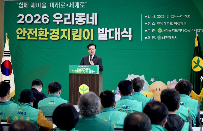 [대전 세계타임즈=이채봉 기자] 대전시의회 조원휘 의장은 26일 2026 우리동네안전환경지킴이 발대식에 참석해 올해 활동의 본격적인 시작을 알렸다.