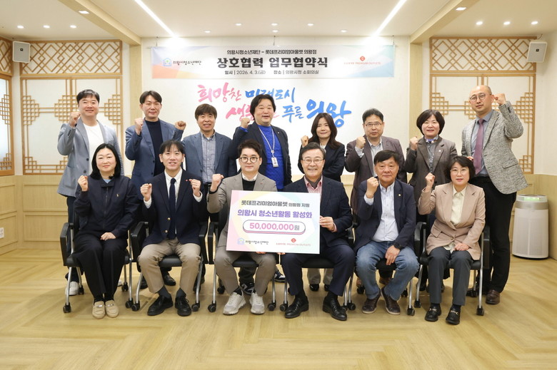 이번 협약식에는 김성제 의왕시청소년재단 이사장(의왕시장) 및 전영남 의왕시청소년재단 대표이사, 문태훈 롯데프리미엄아울렛 의왕점 점장 등이 참석했다.